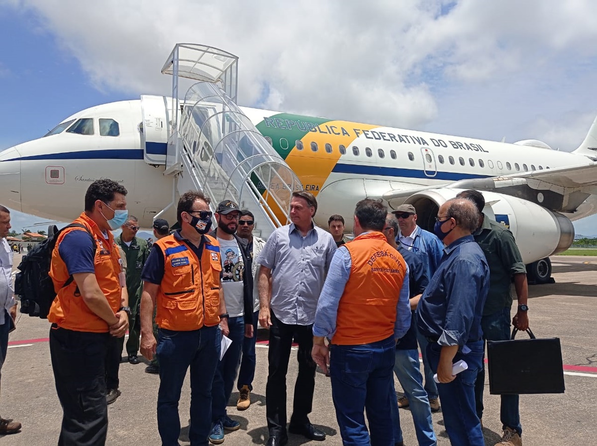 Na manhã deste sábado (19), o presidente Jair Bolsonado (sem partido) fez um sobrevoo nas áreas atingidas pelas enxurradas da última quinta-feira (17), no Alto Vale do Itajaí.
