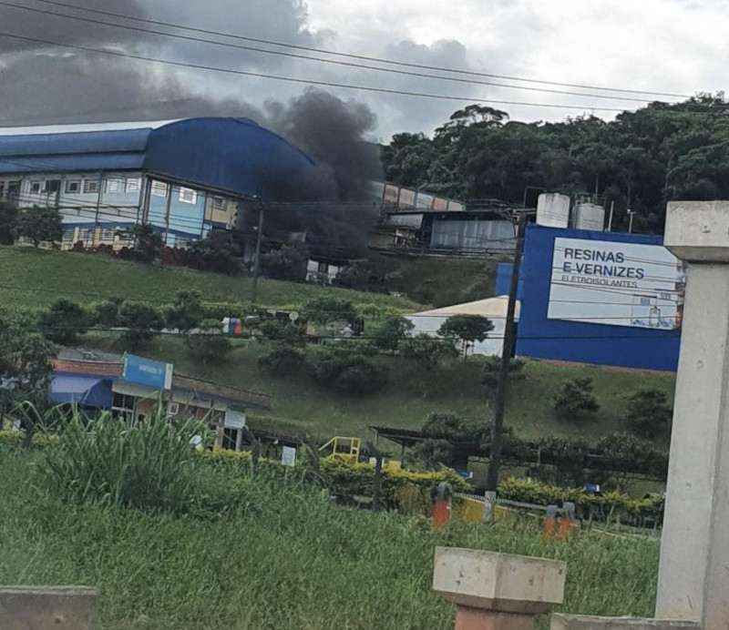 Um incêndio ocorrido no início da tarde deste domingo (18) atingiu a área externa da WEG Tintas, localizada em Guaramirim.