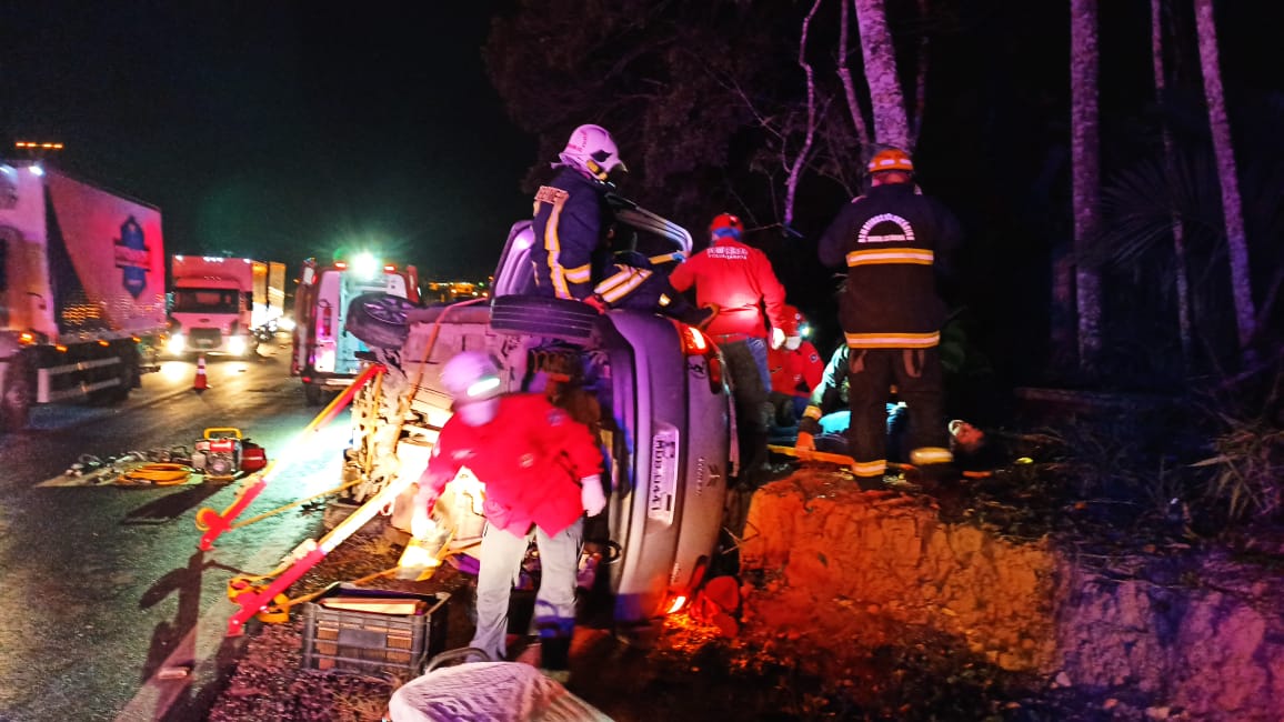 Uma mulher de 21 anos foi resgatada do veículo com dores pelo corpo.