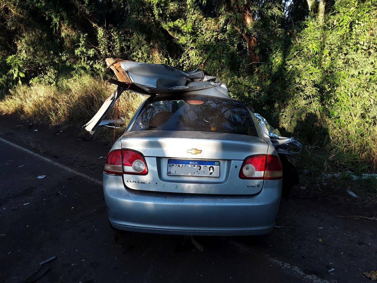 A batida entre um carro e um caminhão aconteceu no quilômetro 112 da rodovia.