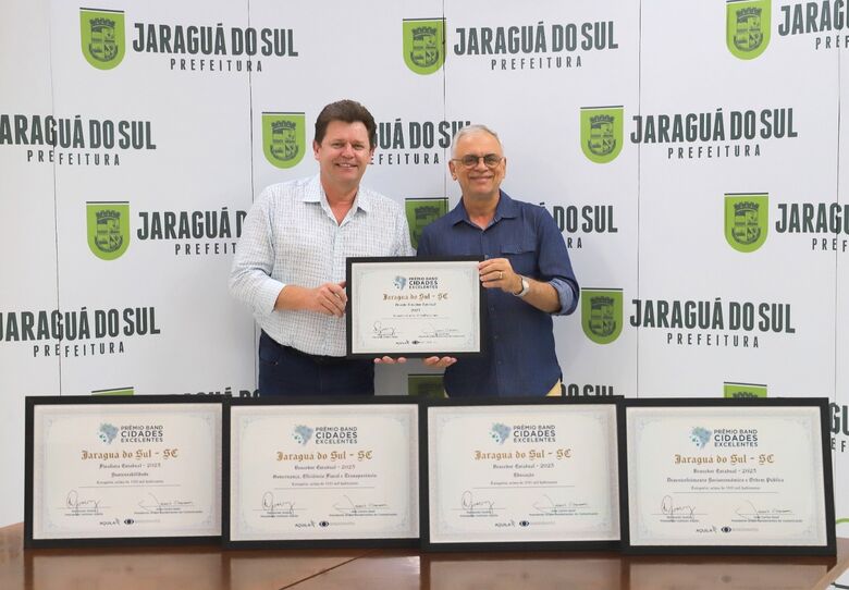 Pela terceira vez seguida (2021 e 2022), Jaraguá do Sul foi o grande destaque da premiação promovida pelo Grupo Bandeirantes e GBV, que levou em conta dados de governança do Instituto Aquila. Os municípios de Santa Catarina com as melhores práticas de gestão pública foram reconhecidos na noite dessa segunda-feira (13) com o Prêmio Band Cidades Excelentes, do Instituto Aquila, Grupo Bandeirantes e Grupo Barriga Verde. Prefeitos e representantes de municípios de todo o estado participaram da cerimônia em Florianópolis.
