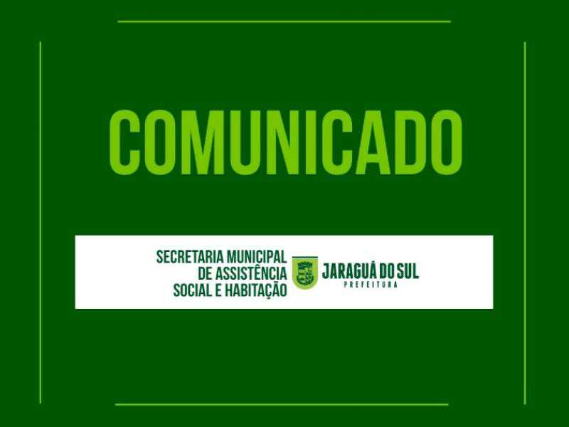 A Prefeitura de Jaraguá do Sul, por meio da Secretaria de Assistência Social e Habitação, informa que não haverá atendimento no Cras do bairro João Pessoa na quarta-feira (20) pela manhã. O motivo é uma atividade externa marcada para este dia.