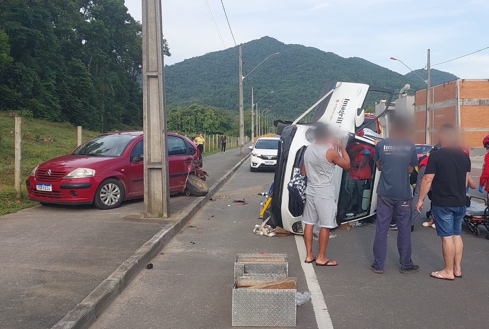 Com o impacto, o Montana acabou virando e ficando de lado na pista.