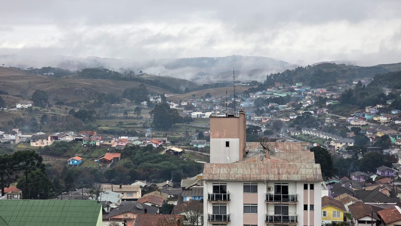 Mau tempo está previsto a partir da tarde. Instabilidades devem continuar durante a semana. Cidade de São Joaquim, na Serra de SC