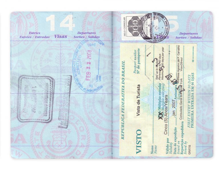 Passaporte estrangeiro com visto para entrada no Brasil
