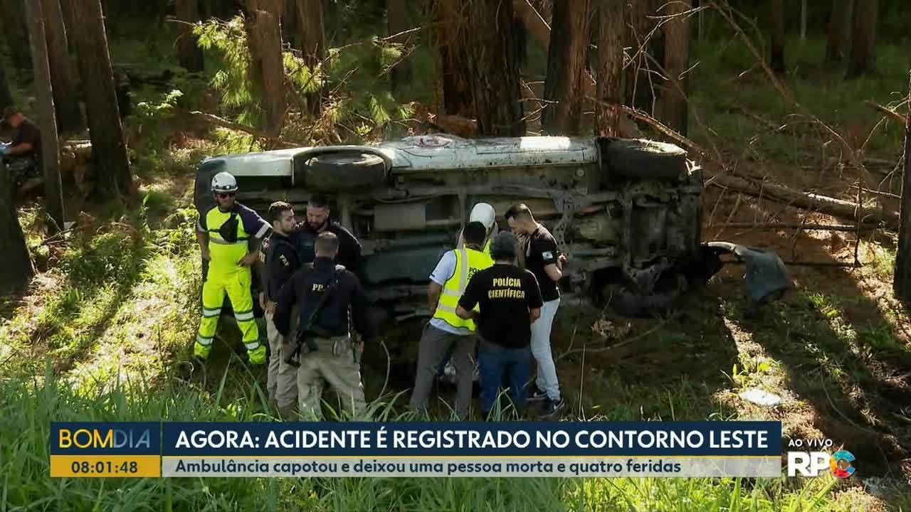Uma pessoa morreu e quatro ficaram feridas após uma ambulância tombar no Contorno Leste da BR-116, em Piraquara, na Região Metropolitana de Curitiba (RMC). O acidente aconteceu por volta das 5h30 desta quarta-feira (12).
