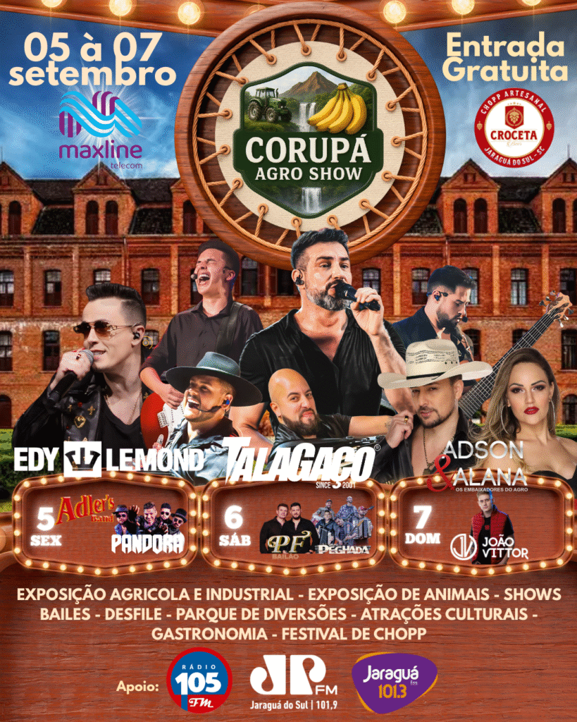 Corupá (SC) — A cidade se prepara para receber um dos maiores eventos do calendário regional: o Corupá Agro Show, que acontece entre os dias 05 e 07 de setembro. Com entrada gratuita, o evento promete reunir milhares de pessoas em uma celebração que une o melhor da agropecuária, da cultura local e do entretenimento.