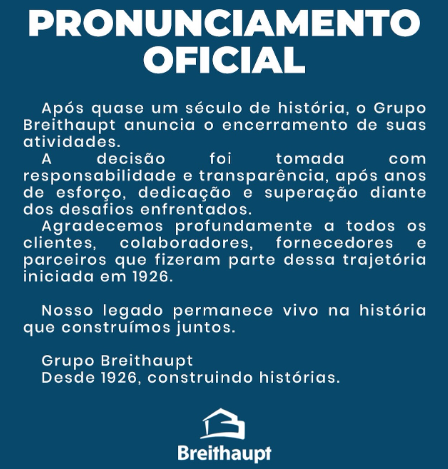Com forte presença em Santa Catarina, o Grupo Breithaupt era reconhecido por seu compromisso com a qualidade e o atendimento às famílias da região. O comunicado reforça que, embora as operações estejam sendo encerradas, a marca deixa uma história marcada por trabalho, confiança e superação.
