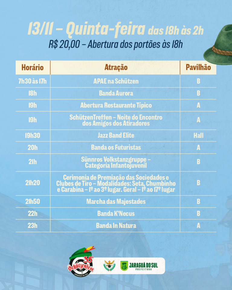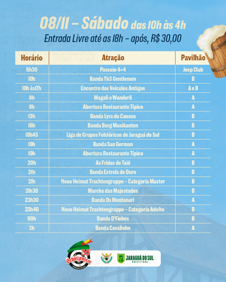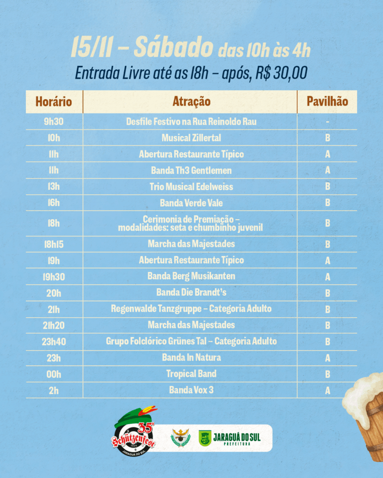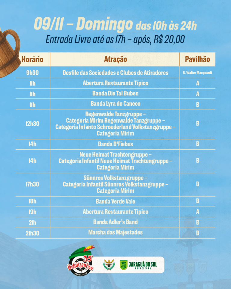 35ª Schützenfest: confira a programação e bilheteria da festa Jaraguá do Sul Prefeitura 3 de novembro de 20253 de novembro de 2025