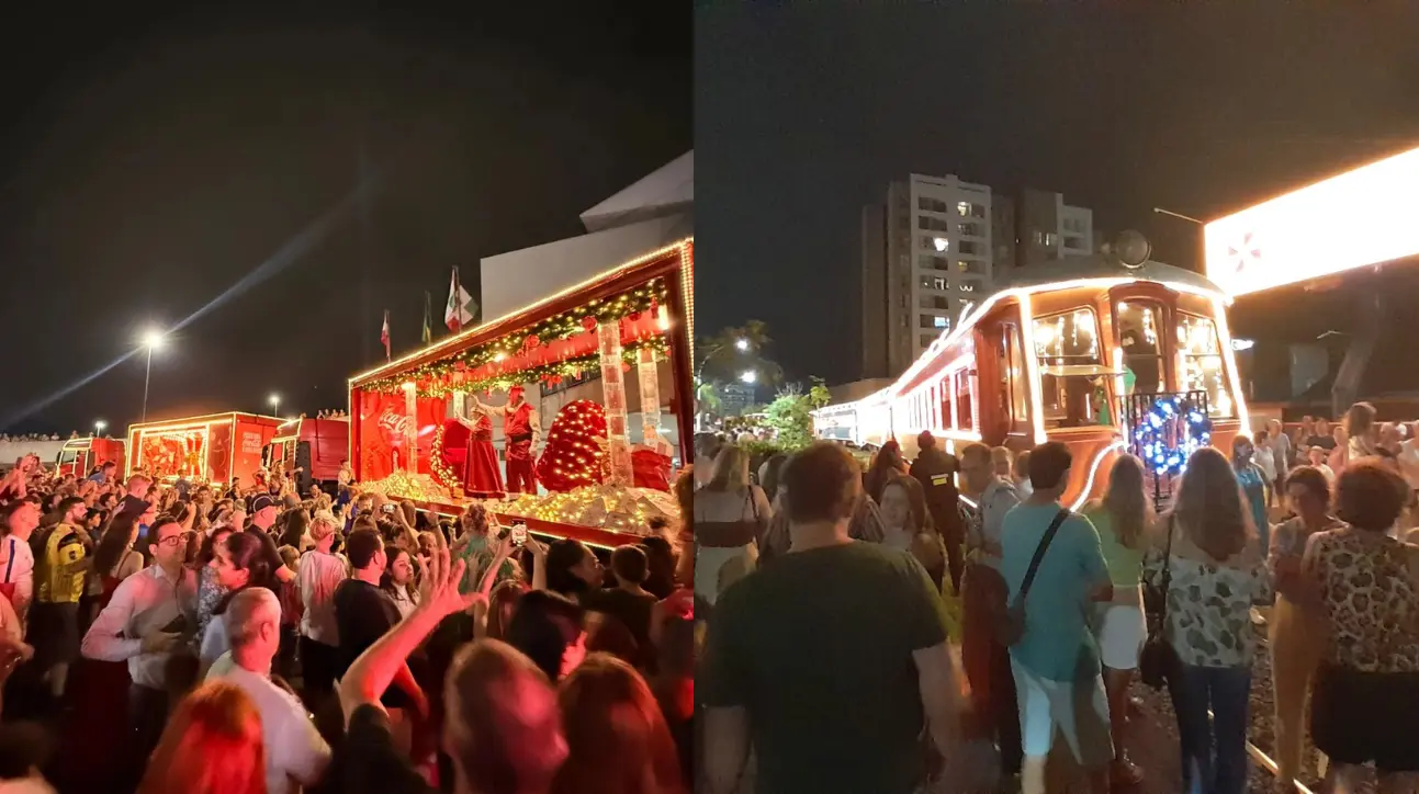 A magia natalina com seus sons e cores também percorreu as ruas de Jaraguá do Sul com a Caravana de Natal Coca-Cola 2025. O comboio natalino saiu do bairro Ilha da Figueira, passando pela Rinaldo Bogo, Barra do Rio Cerro, Centro, terminando seu itinerário na Arena Jaraguá, onde um grande público aguardava. A caravana tinha cinco veículos cenográficos, cada um, com um tema diferente: Carrossel Iluminado; Papai e Mamãe Noel, Presente Painel de LED; Bailarina e Lonas Backlights iluminadas.