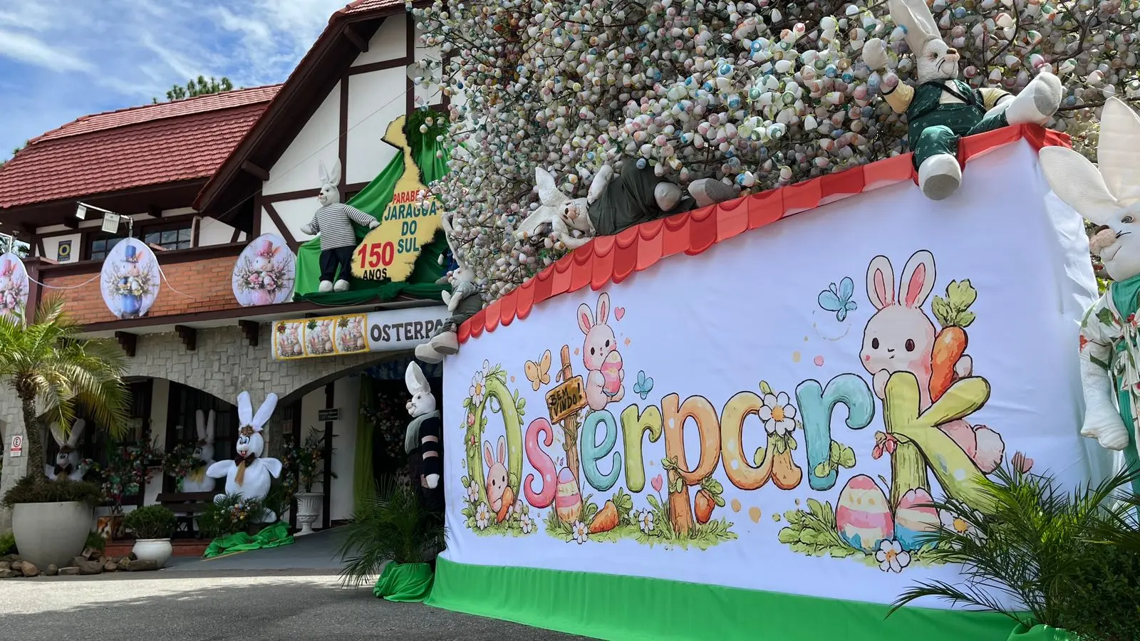 Além dos motivos pascais, a Osterpark também homenageará os 150 anos de Jaraguá do Sul. Em frente ao pavilhão A será montada uma representação da chegada à região de um dos fundadores do Município, Emílio Carlos Jordan pelo Rio Itapocu. “Nessa representação teremos inclusive uma réplica da canoa que ele utilizou na ocasião. Também iremos montar no pavilhão B um grande painel com imagens antigas de Jaraguá. Uma homenagem nossa para nossa cidade”, destacou Traudi.